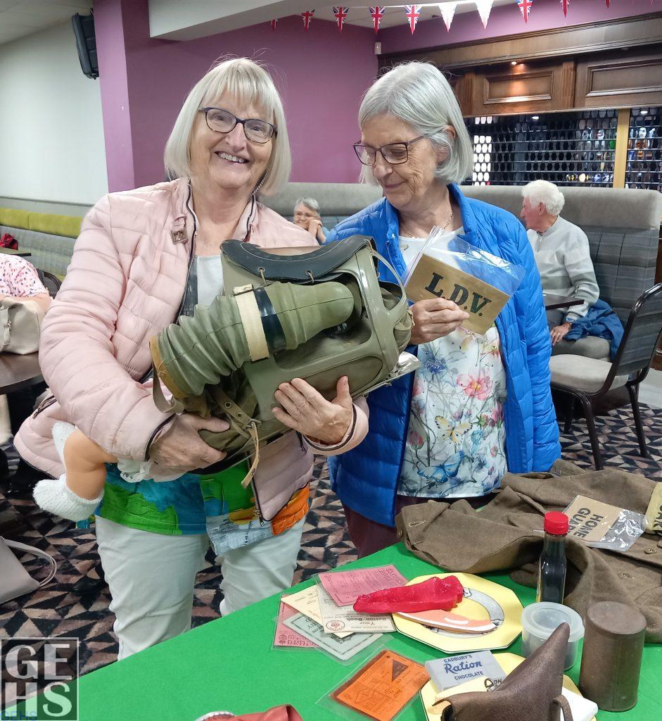 A selection of artifacts from the time were on display. These included the varying sizes and designs of the gas masks issued, including a Mickey Mouse designed gas mask for small children and a gas mask used for babies. The latter is being carried by one of our members in one of the photographs below.